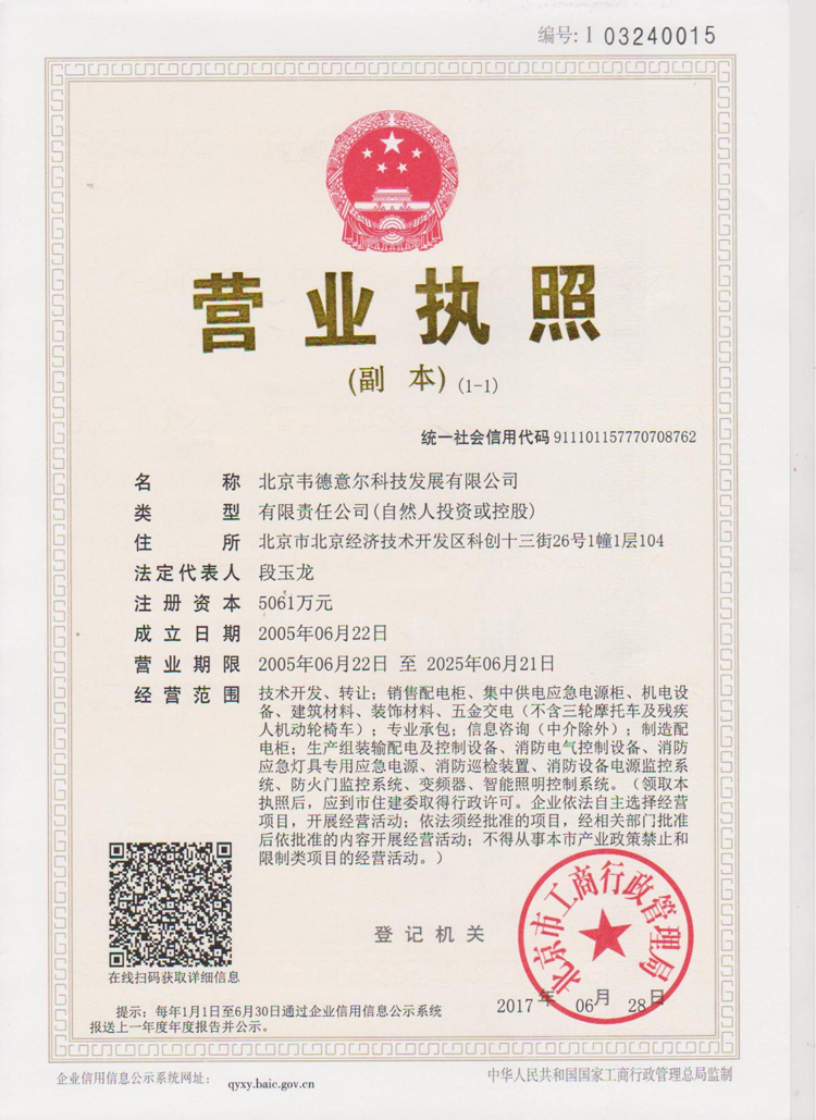> 資質(zhì)榮譽 > 北京韋德意爾科技發(fā)展有限公司