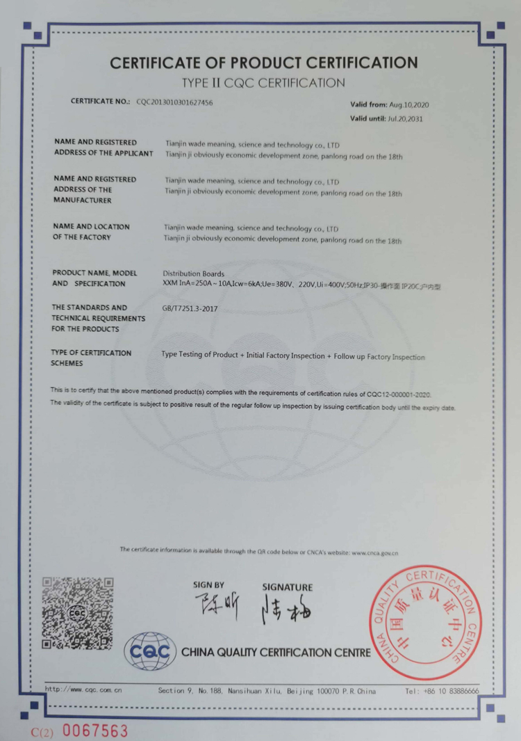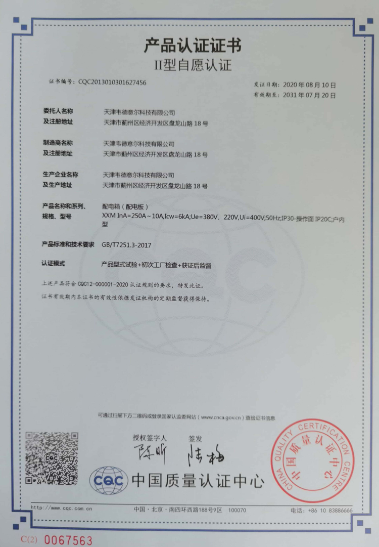 配電箱(配電板)產(chǎn)品認(rèn)證證書