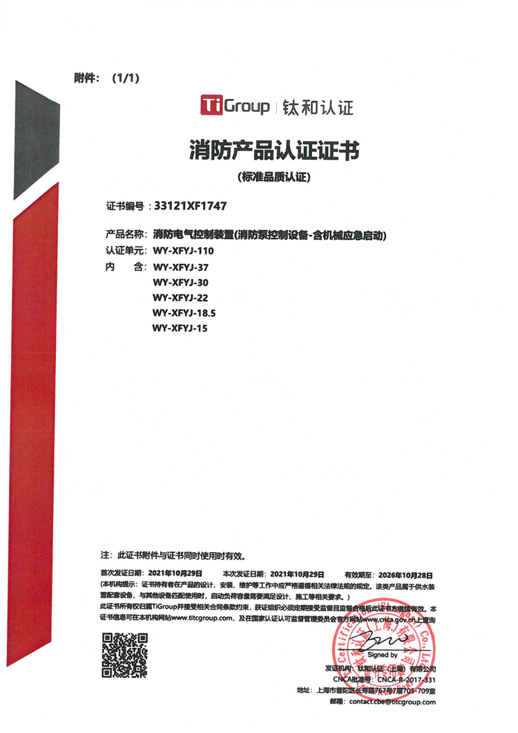 消防電氣控制裝置(消防泵控制設(shè)備-含機(jī)械應(yīng)急啟動(dòng))認(rèn)證證書(shū)及檢驗(yàn)報(bào)告