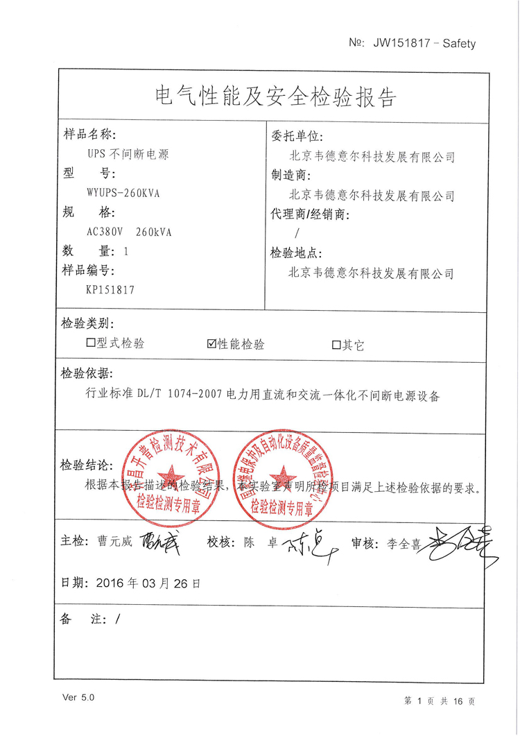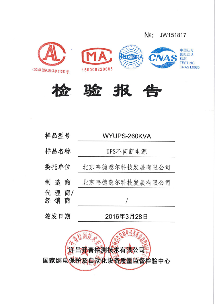 UPS不間斷電源檢驗報告