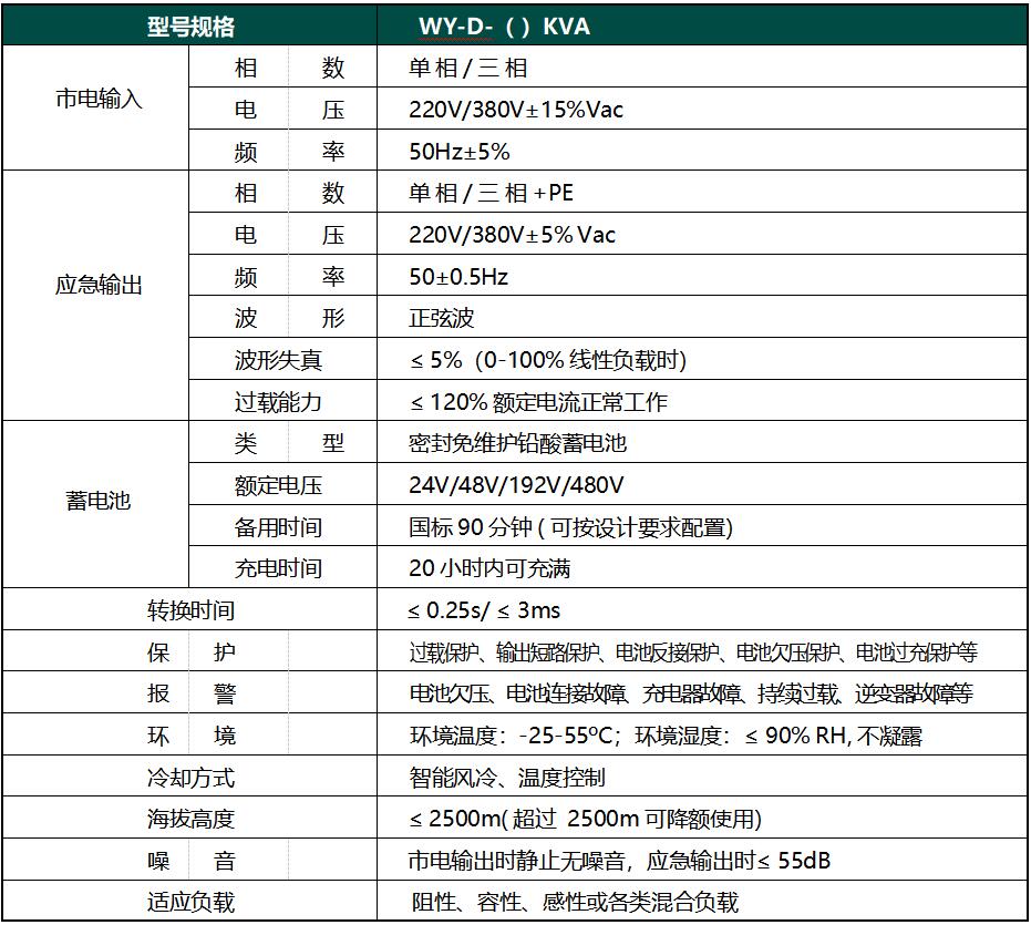 韋德意爾應(yīng)急電源具有完善的保護功能,一旦出現(xiàn)下表所列故障,應(yīng)急電源將進入逆變狀態(tài)或關(guān)閉輸出,以保證負載不受損壞,同時應(yīng)急電源自身也得到保護。