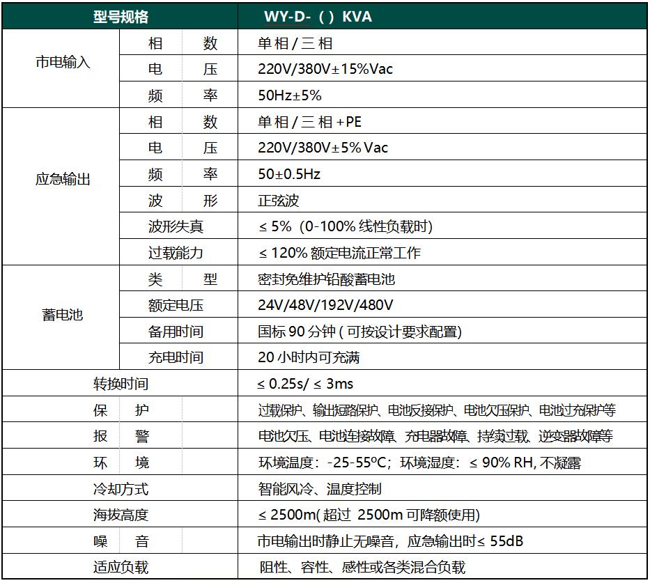 韋德意爾應(yīng)急電源具有完善的保護(hù)功能,一旦出現(xiàn)下表所列故障,應(yīng)急電源將進(jìn)入逆變狀態(tài)或關(guān)閉輸出,以保證負(fù)載不受損壞,同時(shí)應(yīng)急電源自身也得到保護(hù)。